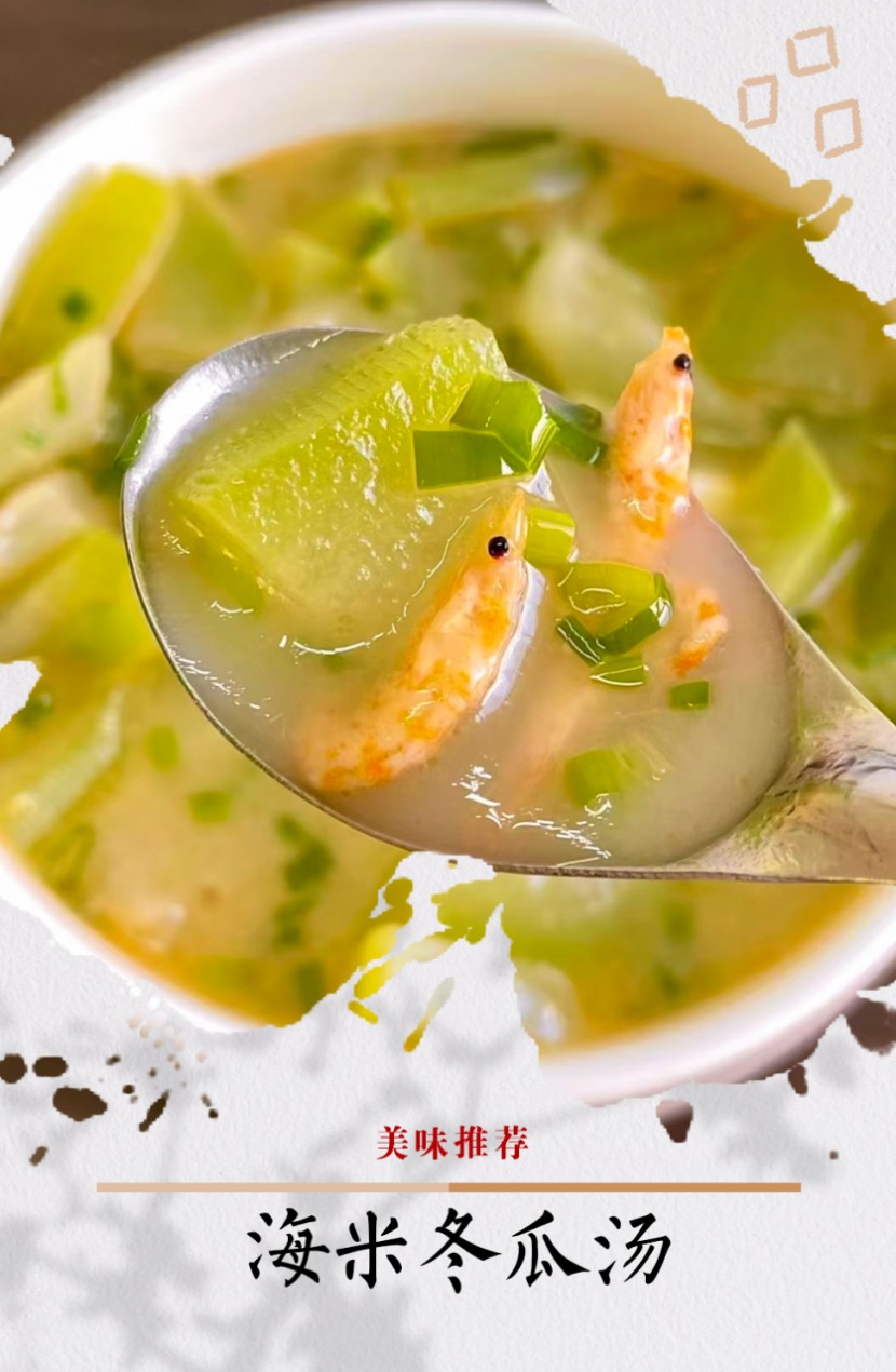 海米冬瓜汤:海米3g、冬瓜10g;