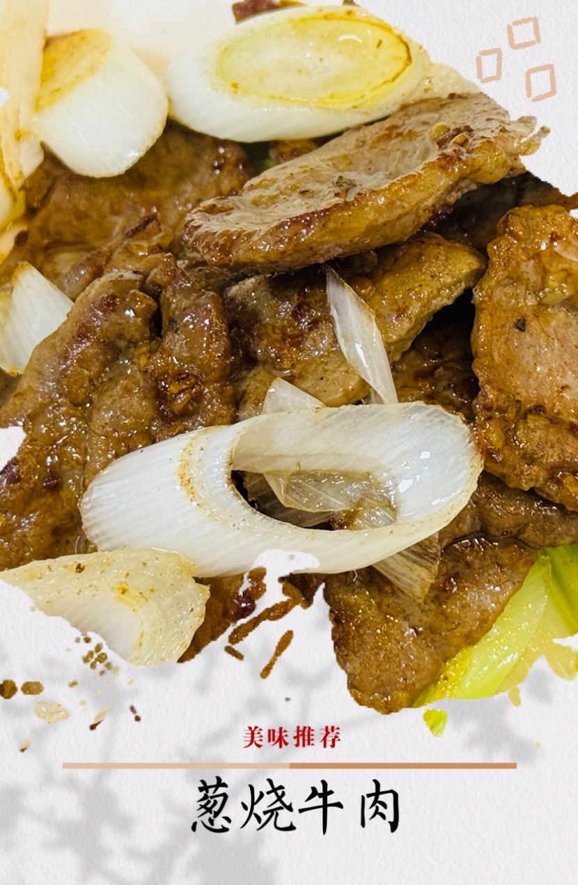 葱烧牛肉:牛肉20g、葱3g;